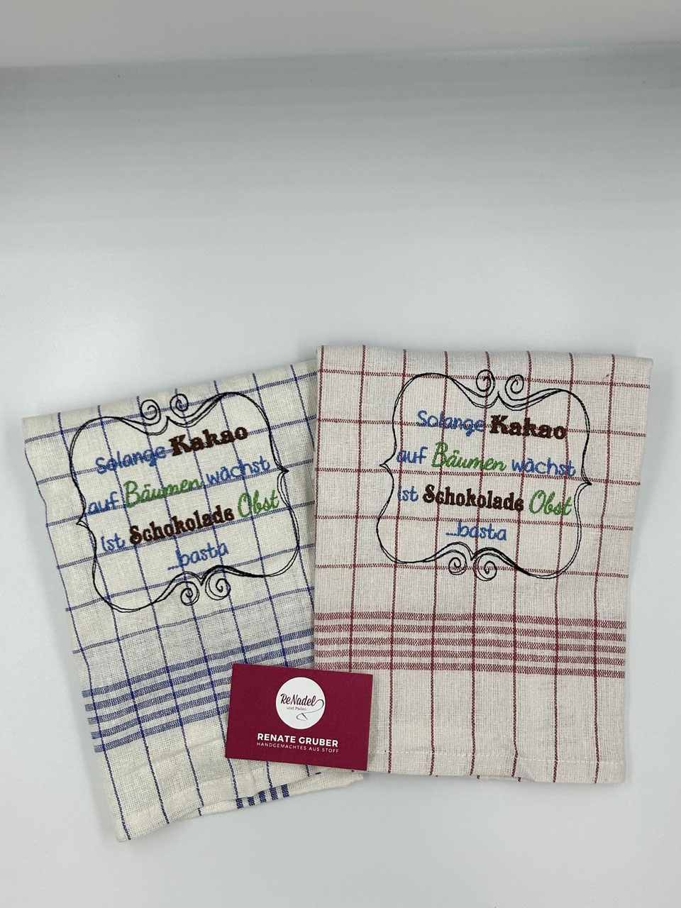 Handtücher und Geschirrtücher können individuell bestickt werden. Trotz Stickerei können diese weiterhin heiß gewaschen und getrocknet werden.