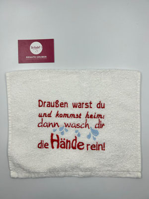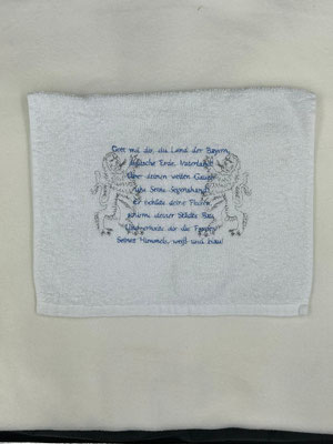 Handtücher und Geschirrtücher können individuell bestickt werden. Trotz Stickerei können diese weiterhin heiß gewaschen und getrocknet werden.